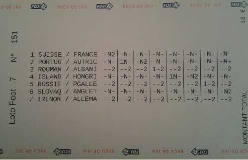 Une technique un peu spéciale qu'il nous décrit ! En gros, sur le reçu ci-dessous il a trouvé les 7 matches en sec ! Et le double rajouté sur chaque grille lui a permis de toucher à chaque fois le 6 :blink: