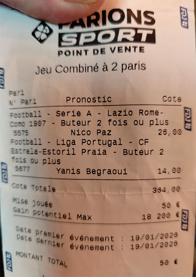 N'hésitez pas à nous envoyer vos tickets gagnants que vous pouvez commenter, en temps et en heure, et en vous assurant que la photo est de bonne qualité. Nous refusons régulièrement quelques tickets exceptionnels à cause de cela.