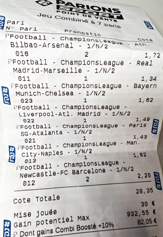 Presque 1 k de gains pour ce combi de 7 paris bien sélectionnés.