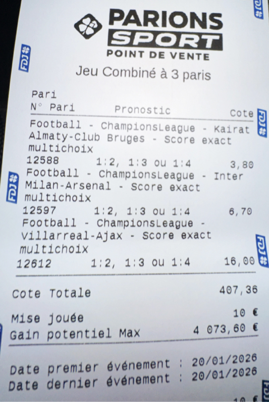 Félicitations à yan137 qui a combiné 3 scores exacts multi choix en Ligue des Champions.