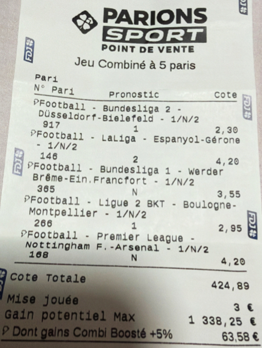 De belles cotes, à la fois osées et combinées permettent à cemalkorkmaz de dépasser les 420 de cote avec 5 sélections.