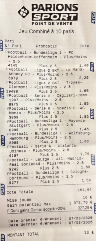 Un ticket 100 % foot pour savino et 100 % consacré au pari Over + 2,5 buts